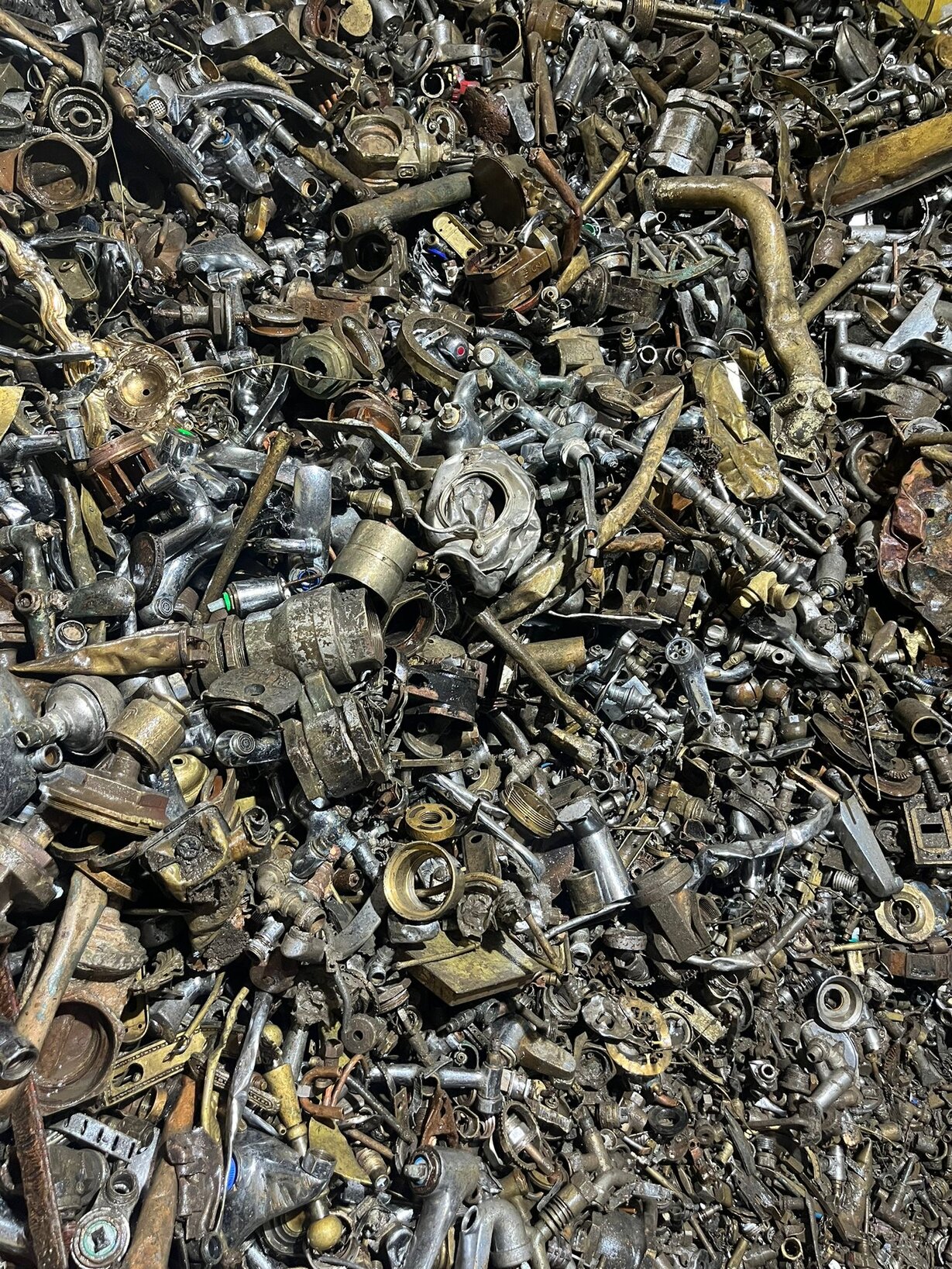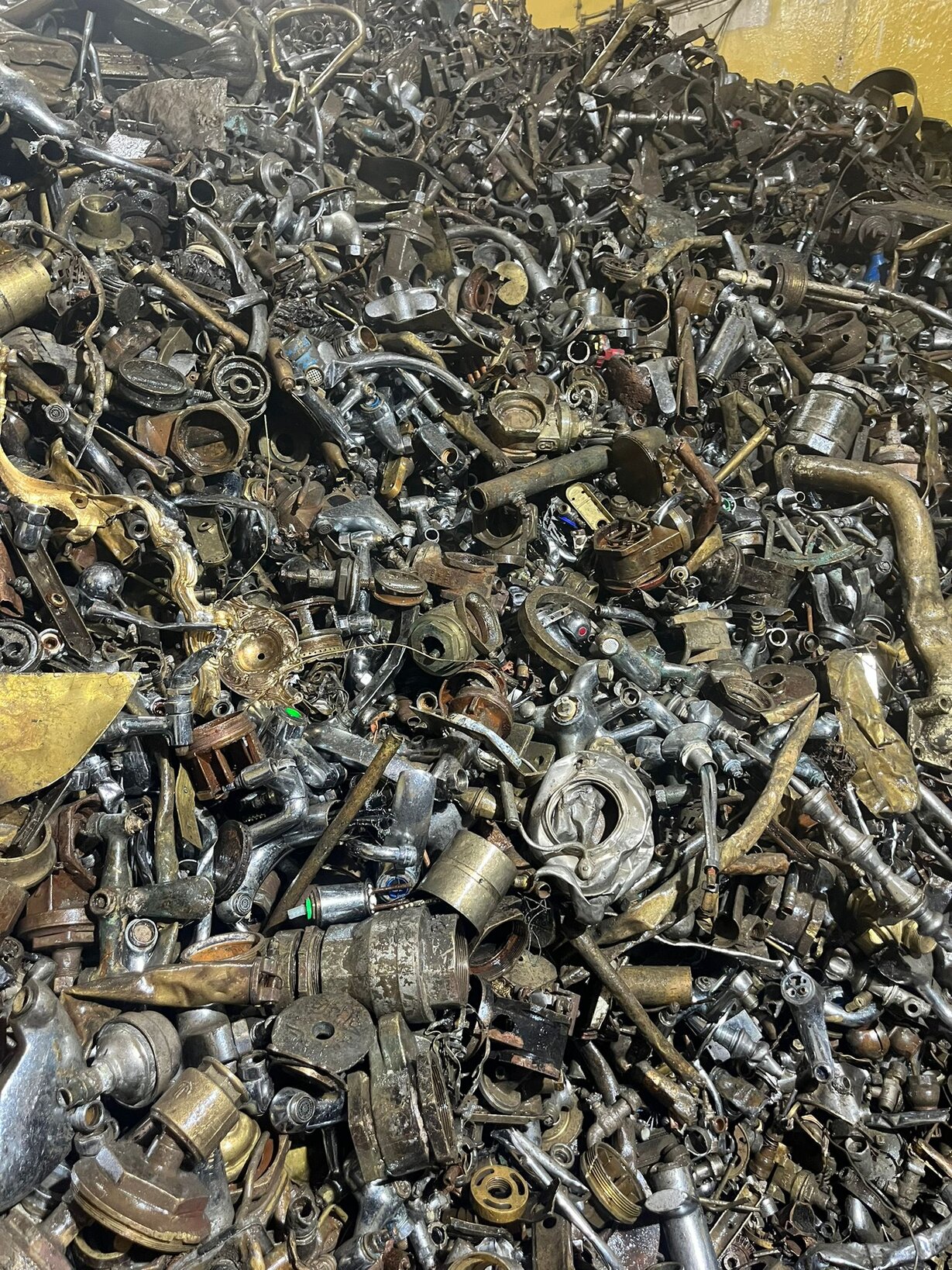 Recyclable brass pipe scrap, ideal for plumbing, construction, and industrial uses.